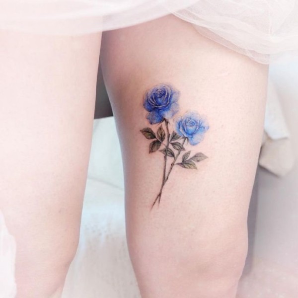 性感花朵纹身--女性大腿侧部性感的花朵纹身