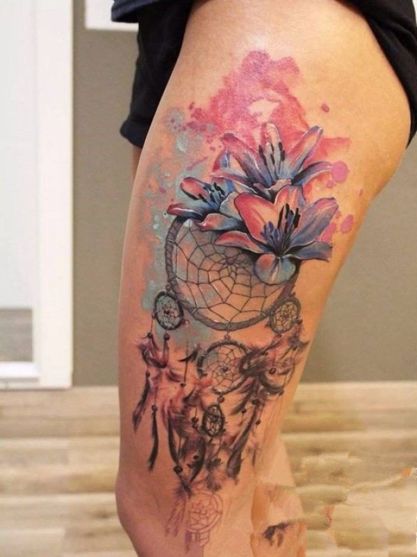 女孩子喜欢的小清新捕梦网纹身作品