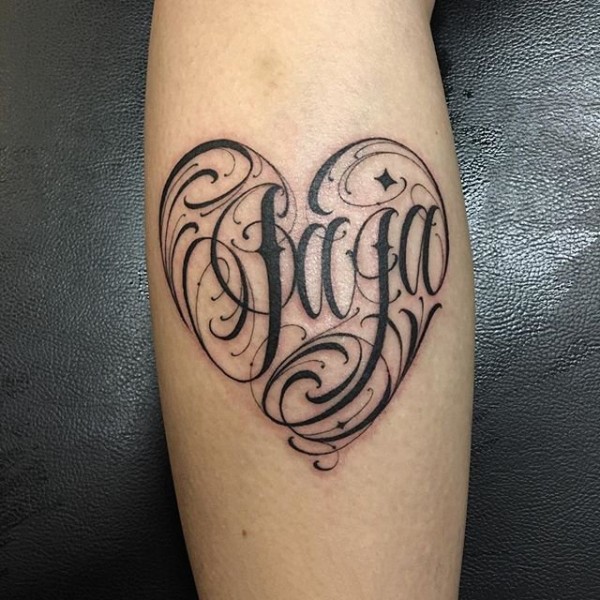 非常好看的心形花体字纹身图片9张