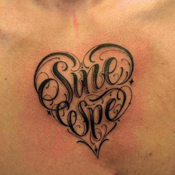 非常好看的心形花体字纹身图片9张