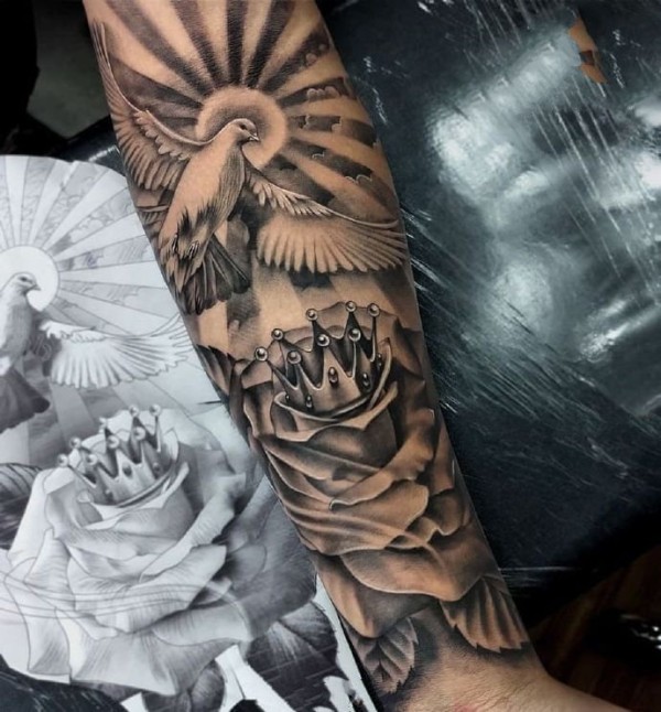 欧美花臂纹身_22张霸气黑灰欧美大黑花臂纹身图案作品图片
