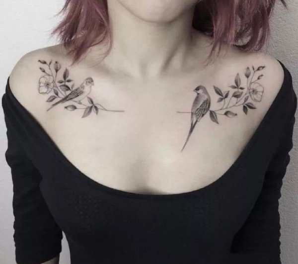 肩花纹身--一组适合肩部的黑灰肩花纹身图案欣赏