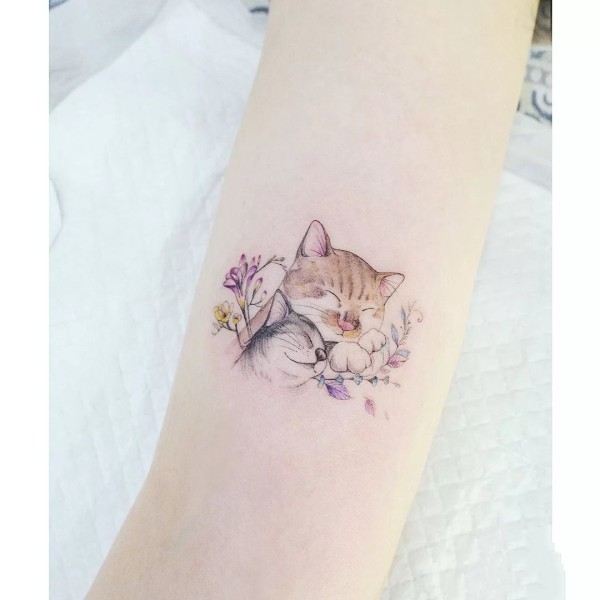小清新猫纹身:狠可爱的一组小清新猫纹身图案