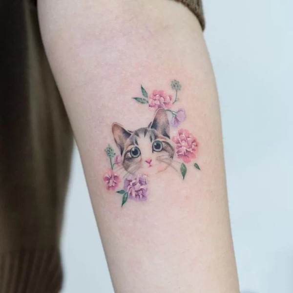 小清新猫纹身:狠可爱的一组小清新猫纹身图案