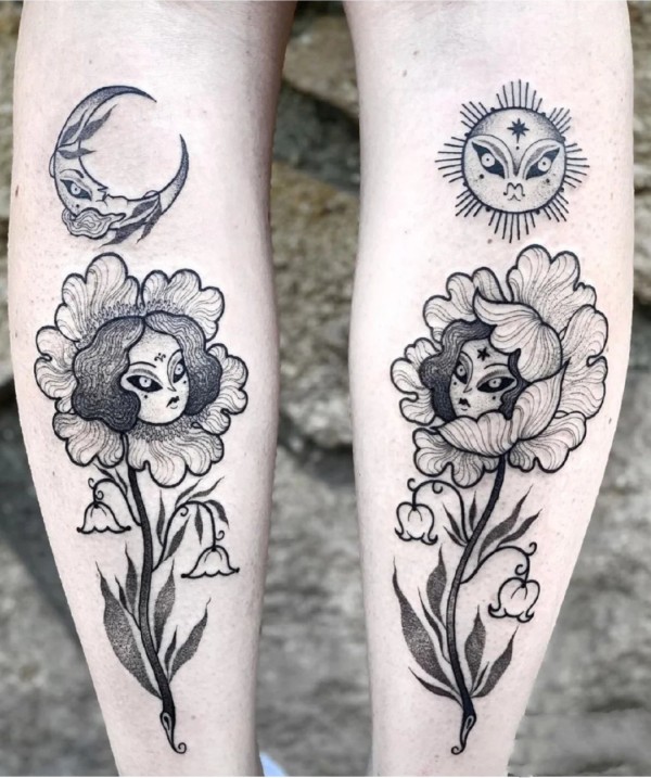 女生人物纹身图案 女生小腿上女生人物纹身图案