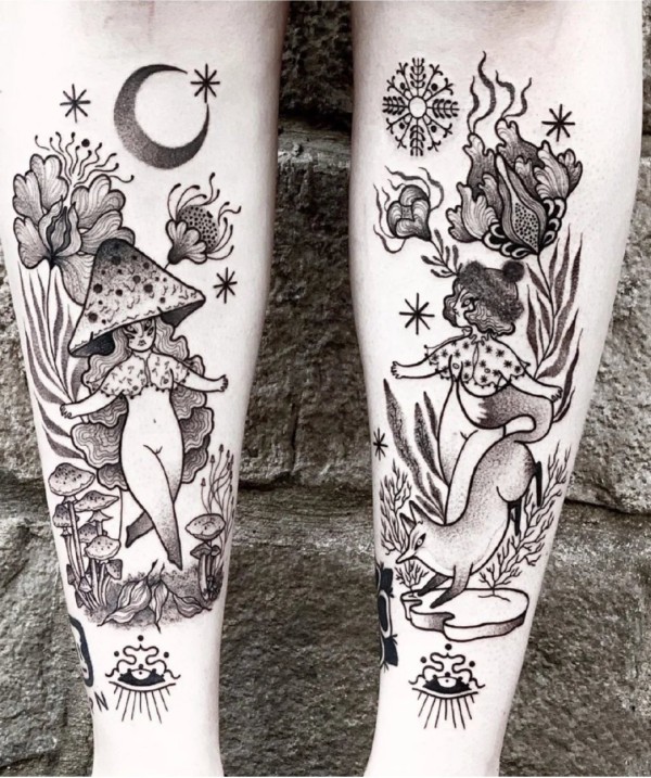 女生人物纹身图案 女生小腿上女生人物纹身图案