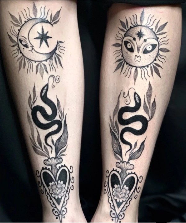 一组适合小腿和手臂的黑灰点刺纹身图案作品欣赏
