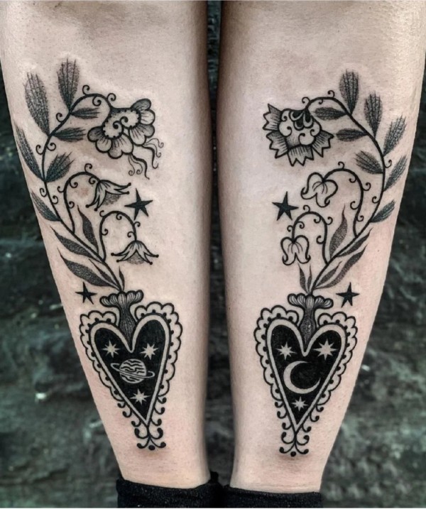 一组适合小腿和手臂的黑灰点刺纹身图案作品欣赏