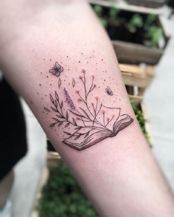 纹身书籍 女生手臂上生命树和书籍纹身图片