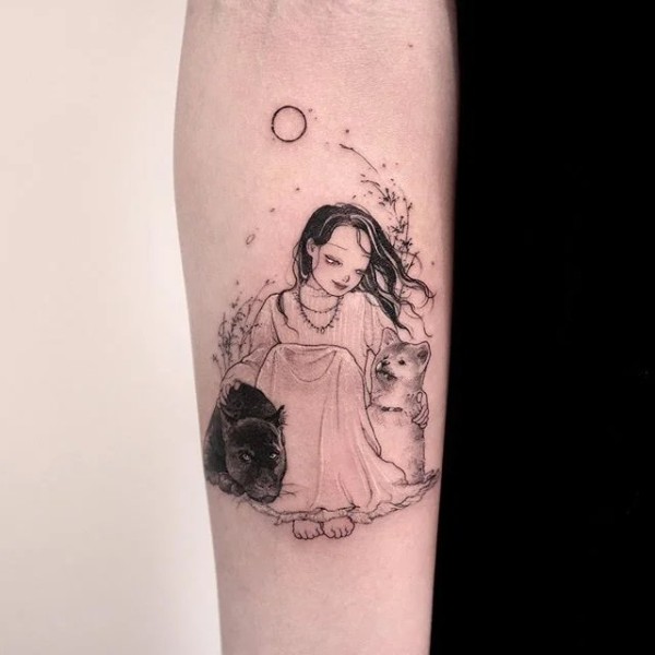 少女系列纹身图案-9张韩国纹身师Neondrug的创作少女系列纹身图片