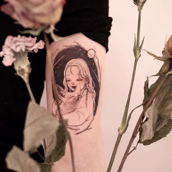 少女系列纹身图案-9张韩国纹身师Neondrug的创作少女系列纹身图片
