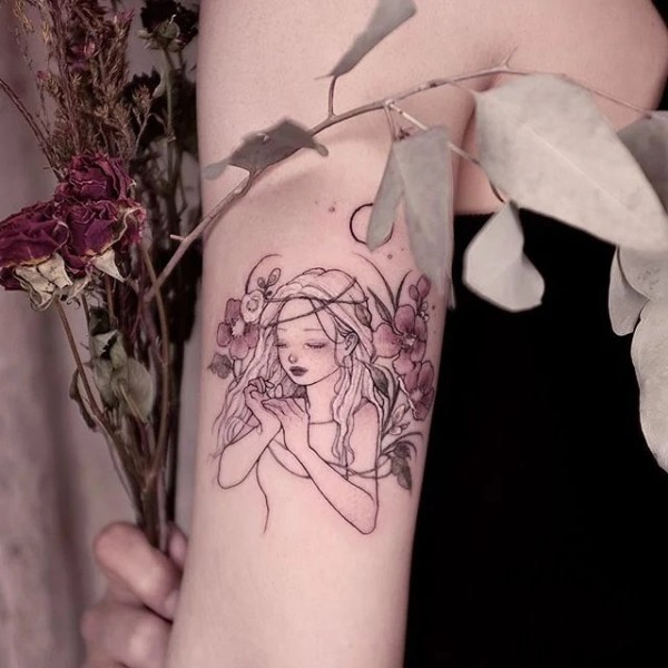 少女系列纹身图案-9张韩国纹身师Neondrug的创作少女系列纹身图片