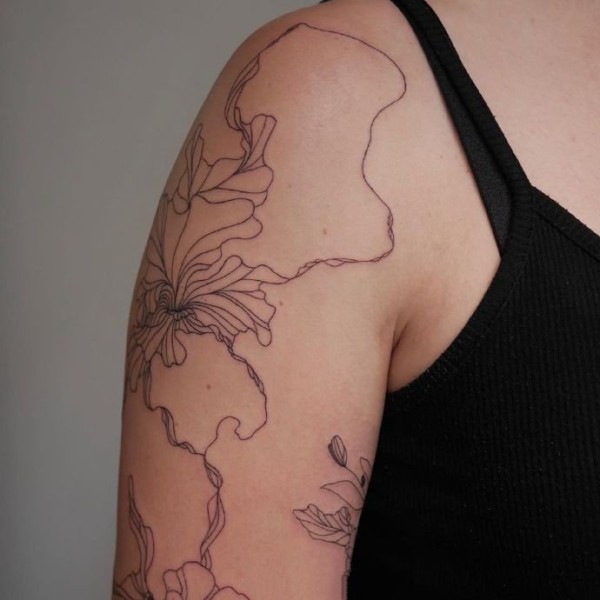 极简线条纹身 多款极简线条纹身素描欧美抽象纹身图片