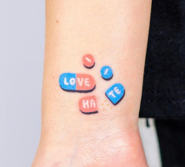 复古卡通红唇美女手臂纹身_卡通纹身图案大全_纹身图吧