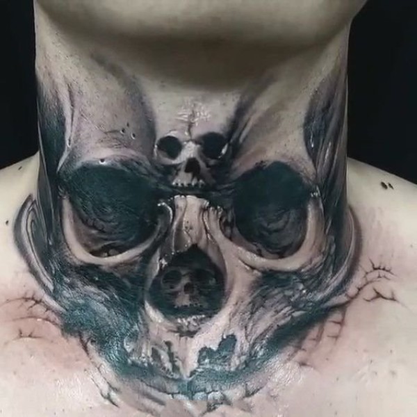 脖子上个性十足的彩色骷髅纹身_脖子纹身图案大全_纹身图吧