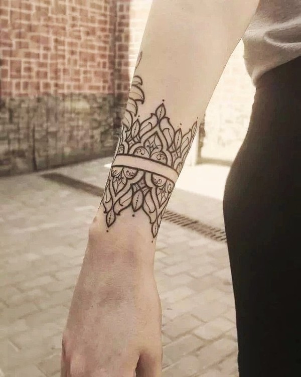 漂亮的黑灰色曼陀罗花臂纹身图案