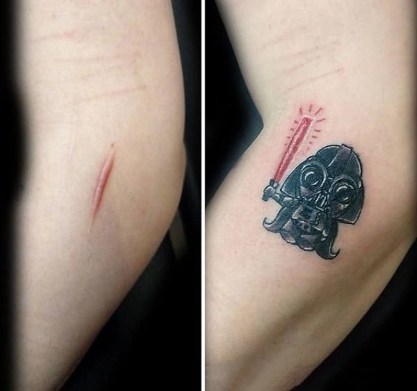 个性伤疤遮盖纹身