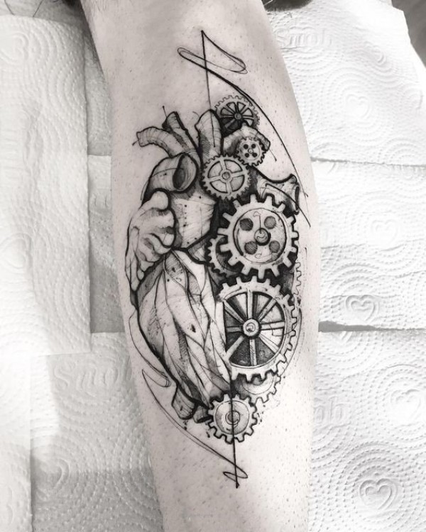 心脏纹身图案 女生手臂上黑灰纹身心脏纹身图案