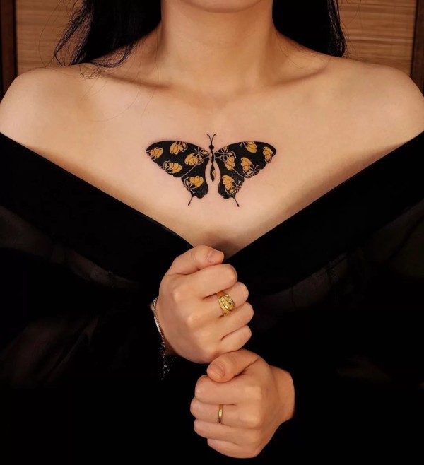 适合做遮盖的9张花蝴蝶主题纹身图片