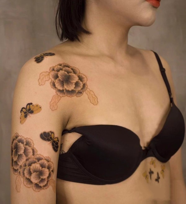 适合做遮盖的9张花蝴蝶主题纹身图片