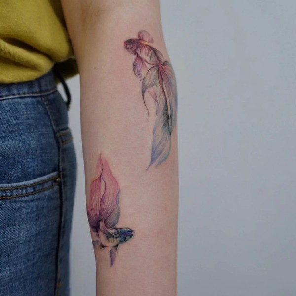 金鱼纹身 漂亮的9张唯美彩色小金鱼纹身图案