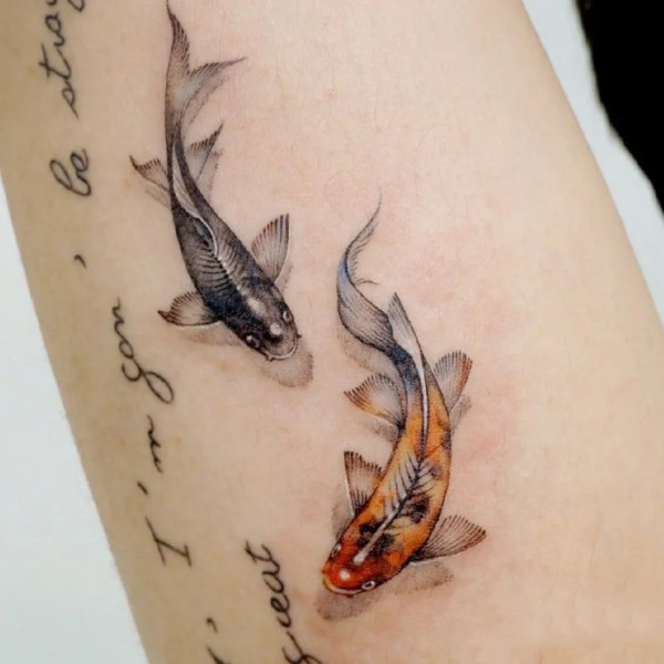 金鱼纹身 漂亮的9张唯美彩色小金鱼纹身图案