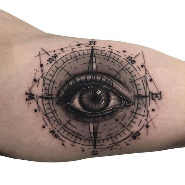 纹身眼睛纹身图案 男性手臂上穿透灵魂的黑色素描纹身眼睛纹身图案