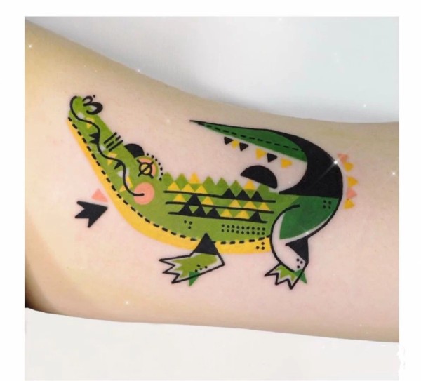 德国恐龙纹身眼镜蛇和卡通鳄鱼纹身水彩动物图案纹身