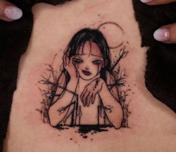 手臂插画纹身_9张黑灰手臂上的插画纹身图案作品图片