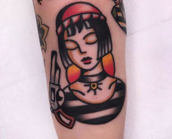 复古卡通红唇美女手臂纹身_卡通纹身图案大全_纹身图吧