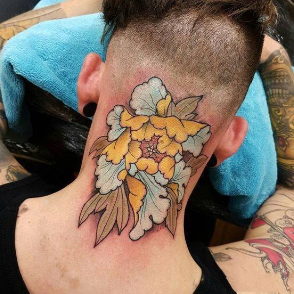 个性时尚的脖子上的花朵纹身