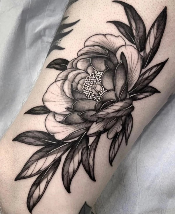 大臂素花纹身 9款女士的大臂黑灰花朵植物纹身图案