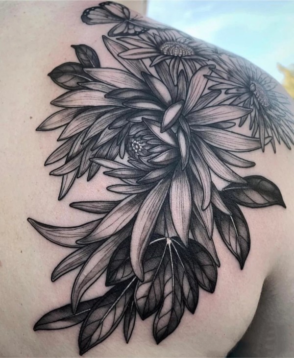 大臂素花纹身 9款女士的大臂黑灰花朵植物纹身图案