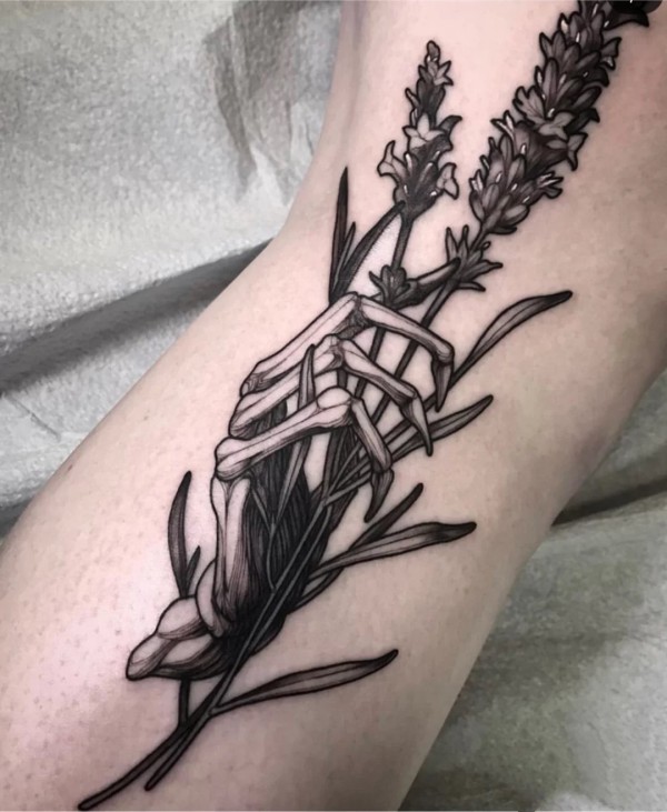 大腿素花纹身 女士大腿处性感的素花纹身图片