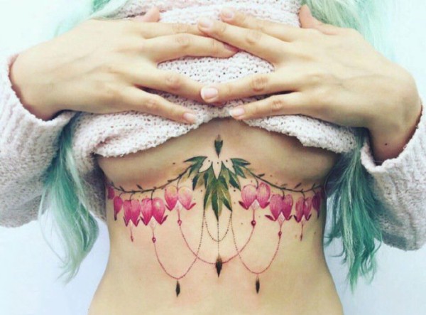 性感花朵纹身--女性大腿侧部性感的花朵纹身