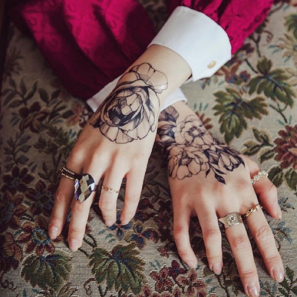 女性各部位的9款黑灰色素花纹身图片