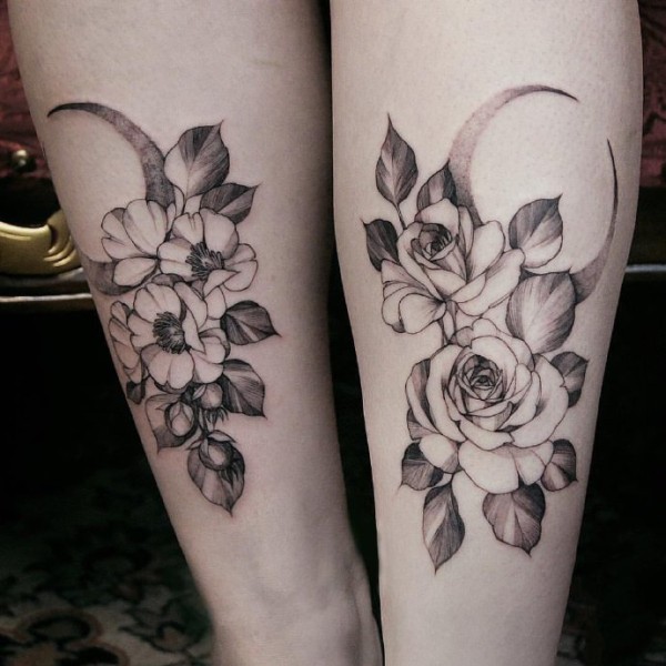 大臂素花纹身 9款女士的大臂黑灰花朵植物纹身图案