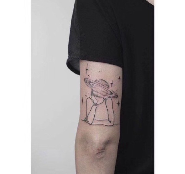 一组手臂上的极简线条纹身图片