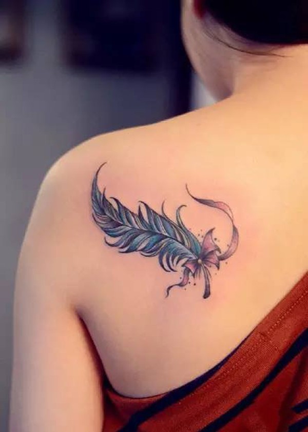 羽毛刺青:16张很漂亮的小清新羽毛纹身图案