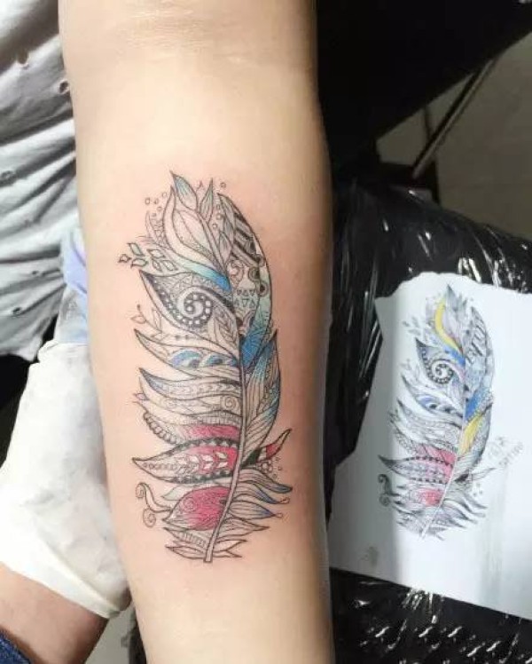 羽毛刺青:16张很漂亮的小清新羽毛纹身图案