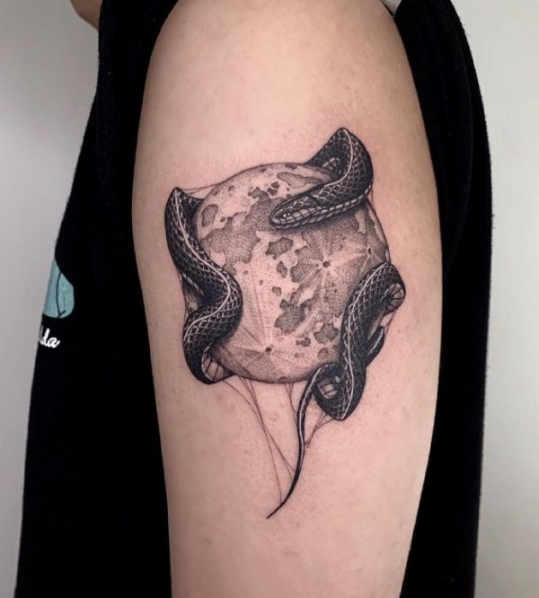 黑色和白色手臂眼镜蛇纹身动物几何点刺纹身图案
