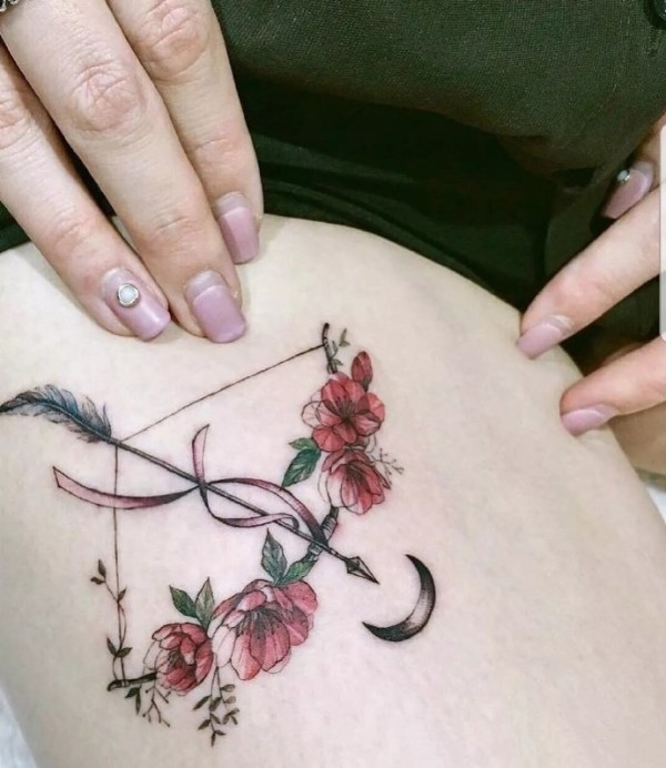 性感花朵纹身--女性大腿侧部性感的花朵纹身