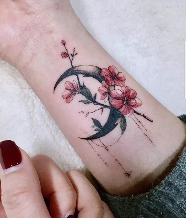 性感花朵纹身--女性大腿侧部性感的花朵纹身