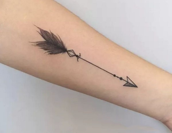 几何元素纹身 男生手臂上指南针和箭矢纹身图片