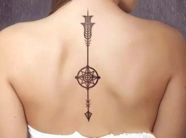 几何元素纹身 男生手臂上指南针和箭矢纹身图片