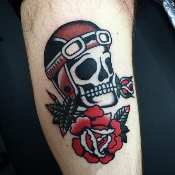 女生手臂经典潮流的骷髅与玫瑰花纹身图案