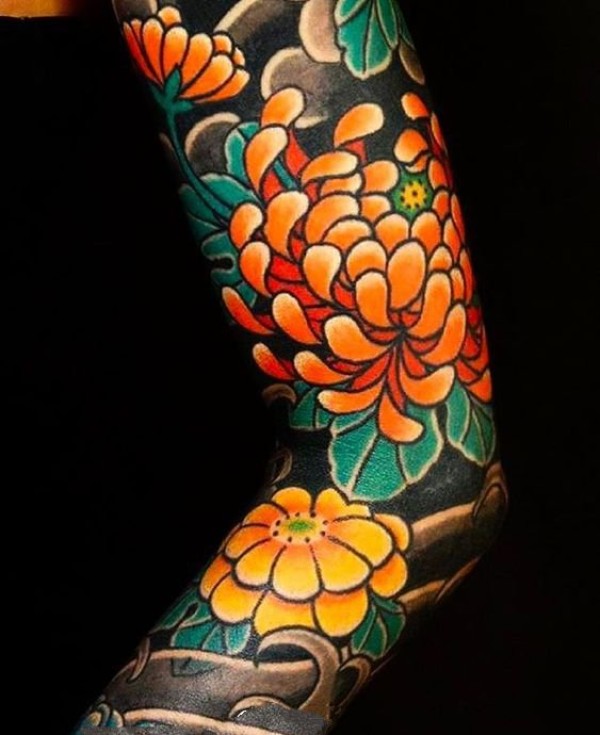 菊花纹身--9张漂亮的传统菊花纹身作品图案