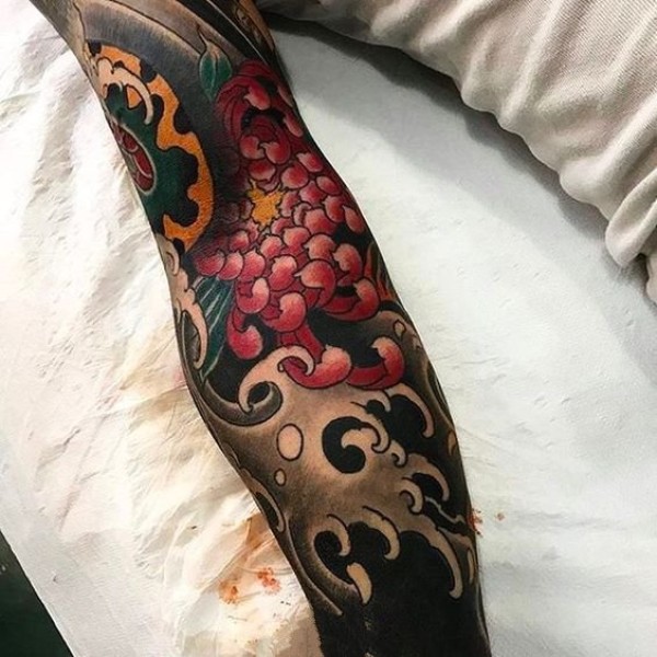 菊花纹身--9张漂亮的传统菊花纹身作品图案