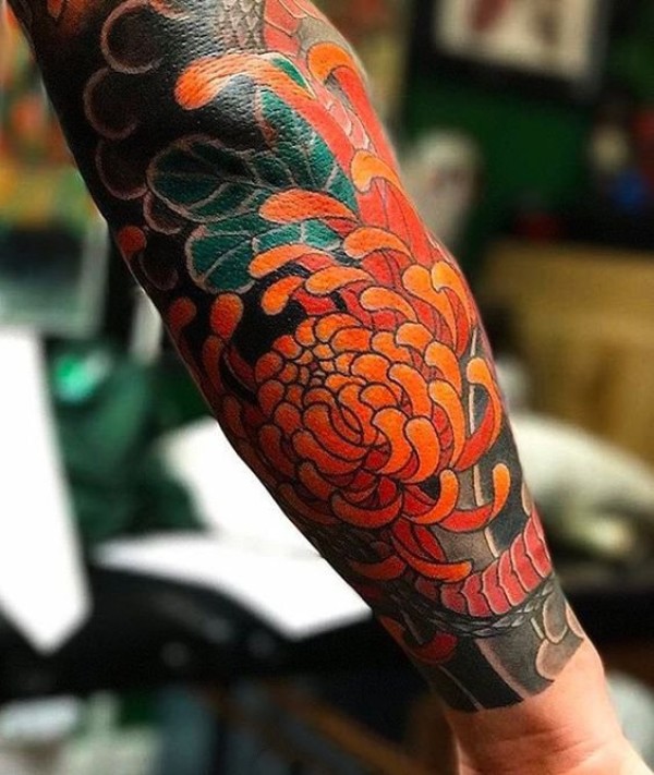 菊花纹身--9张漂亮的传统菊花纹身作品图案