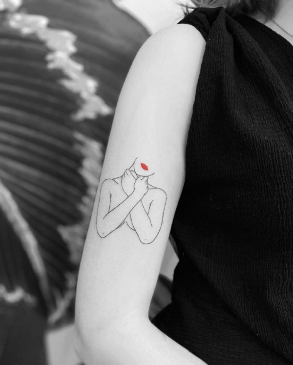 以一笔红色为装饰的极简线条纹身图片9张